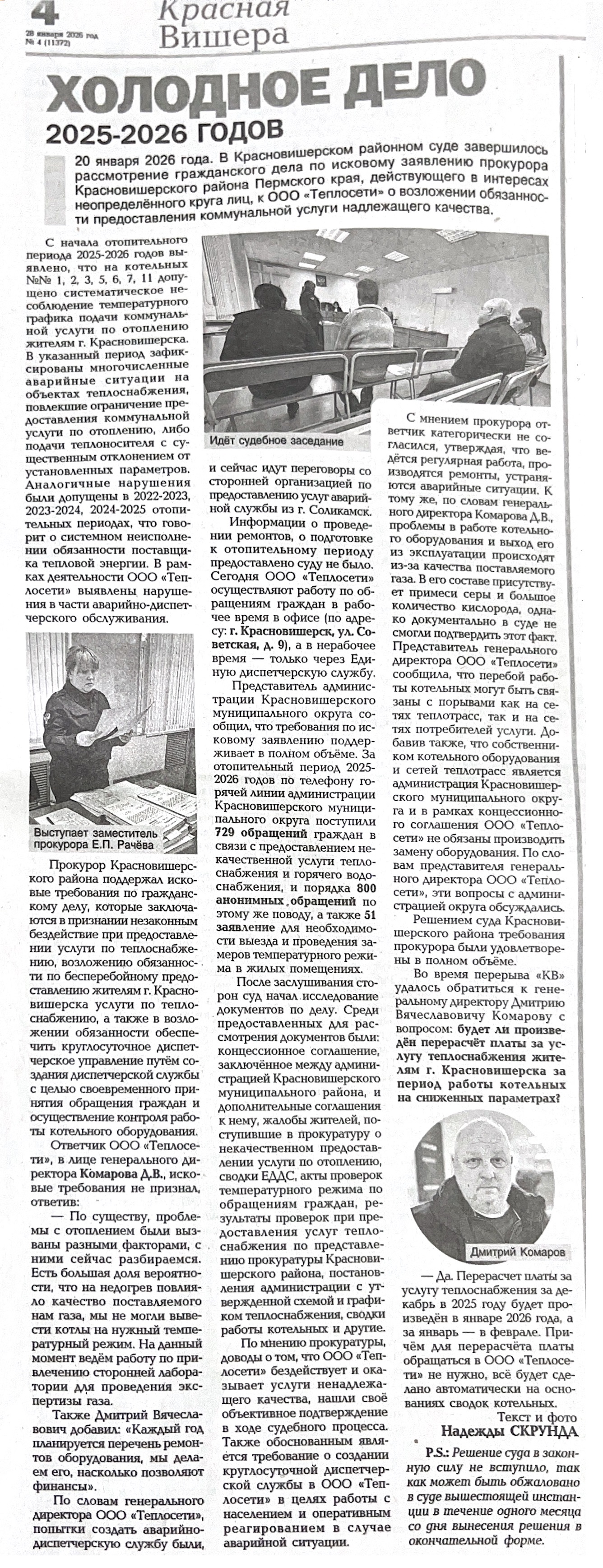 | статья газеты Красная Вмшера "ХОЛОДНОЕ ДЕЛО" | версия для печати |